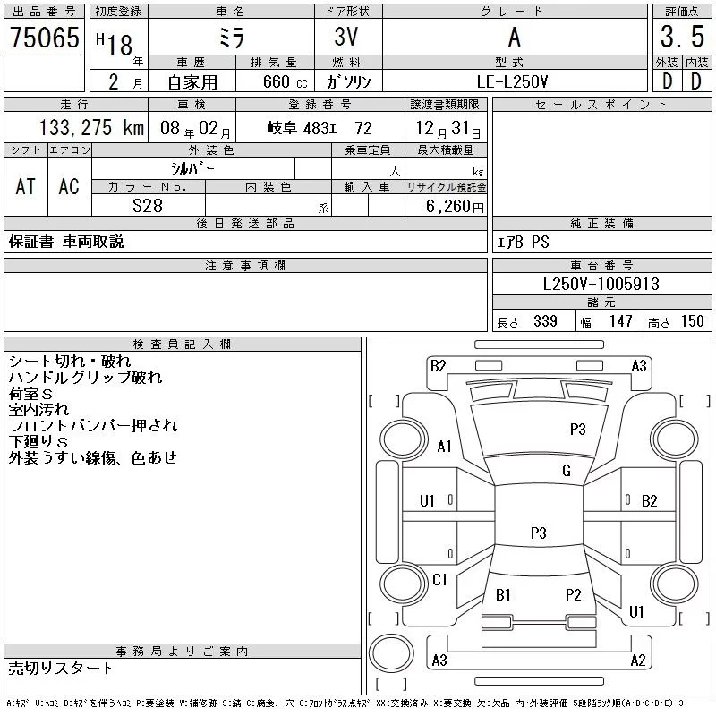 Daihatsu MIRA с аукциона Японии CAA Gifu лот № 75065