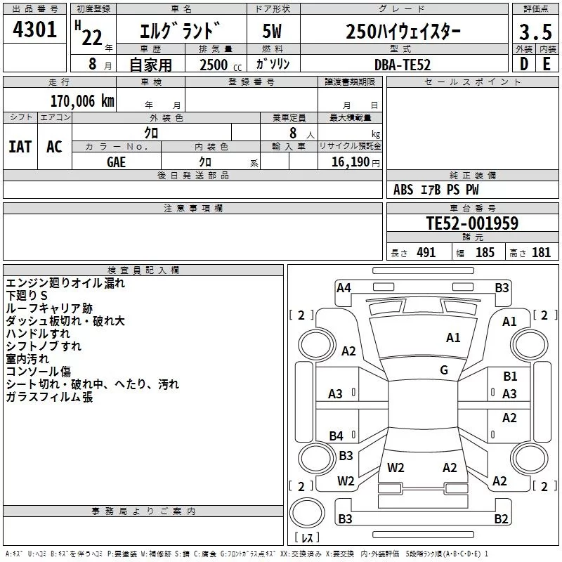 Nissan ELGRAND с аукциона Японии TAA Hiroshima лот № 4301