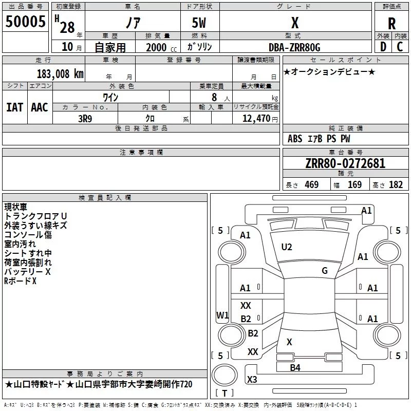Toyota NOAH с аукциона Японии TAA Hiroshima лот № 50005