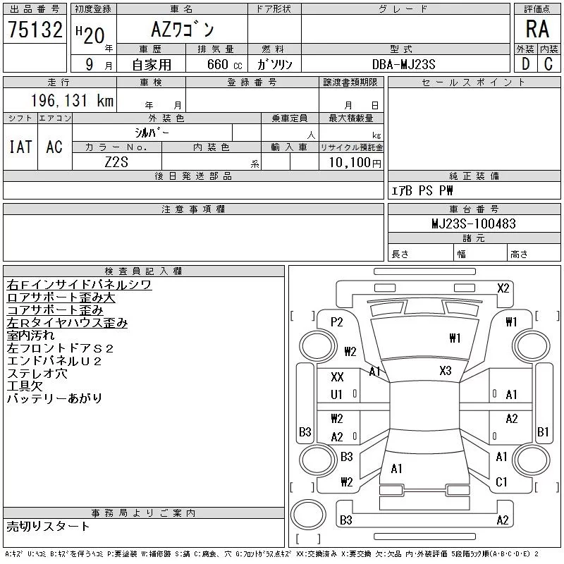 Mazda AZ WAGON с аукциона Японии CAA Gifu лот № 75132