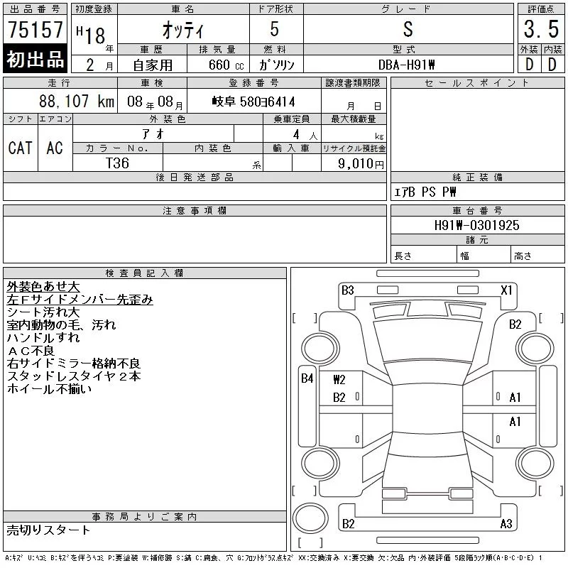 Nissan OTTI с аукциона Японии CAA Gifu лот № 75157