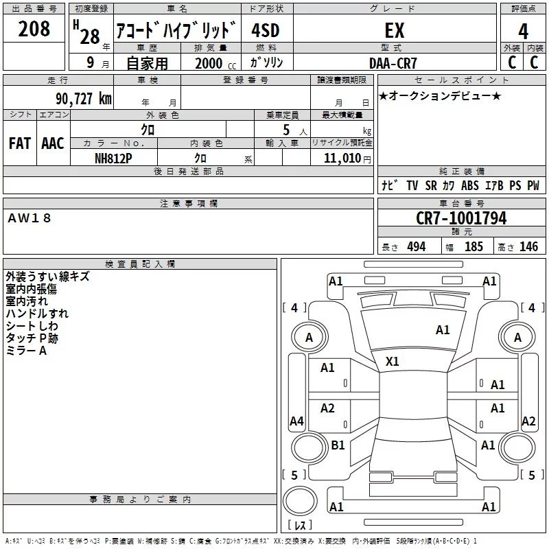 Honda ACCORD с аукциона Японии TAA Hiroshima лот № 208