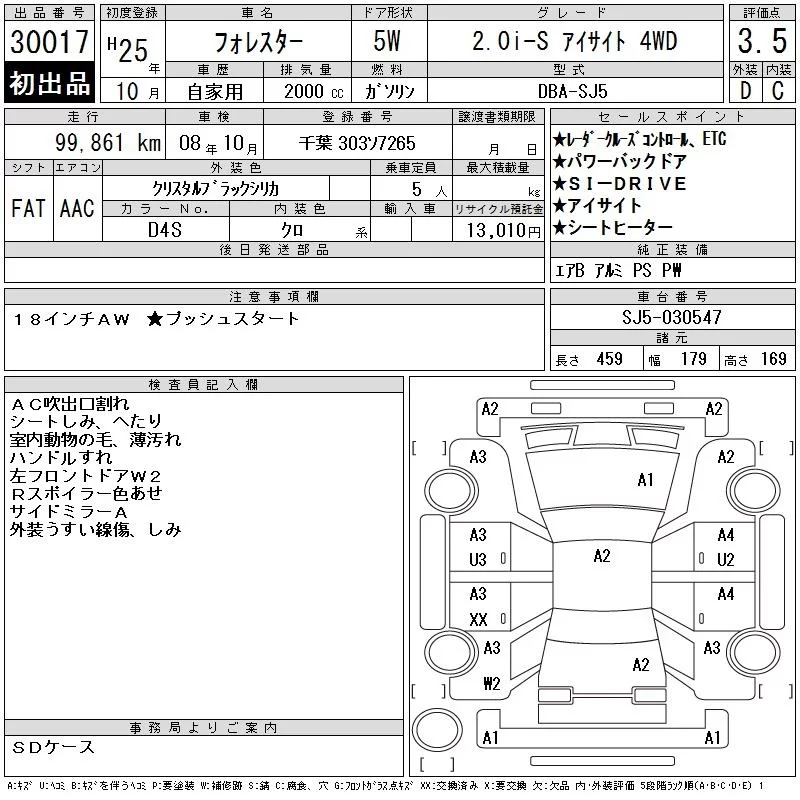 Subaru FORESTER с аукциона Японии CAA Tokyo лот № 30017