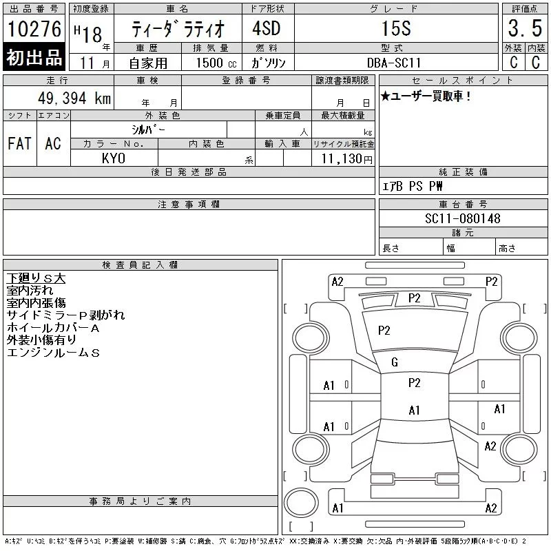 Nissan TIIDA LATIO с аукциона Японии CAA Tokyo лот № 10276