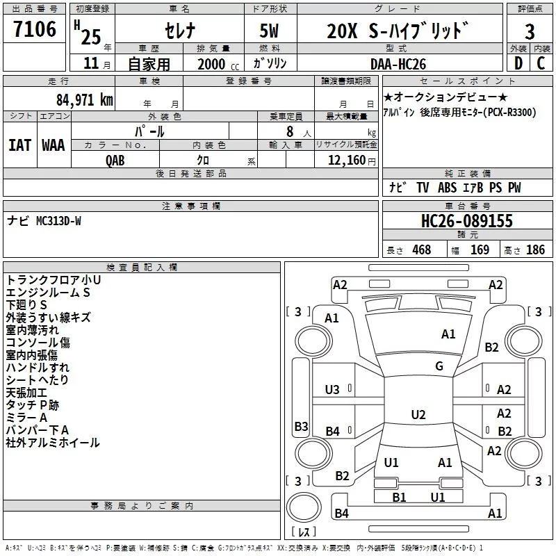 Nissan SERENA с аукциона Японии TAA Hiroshima лот № 7106