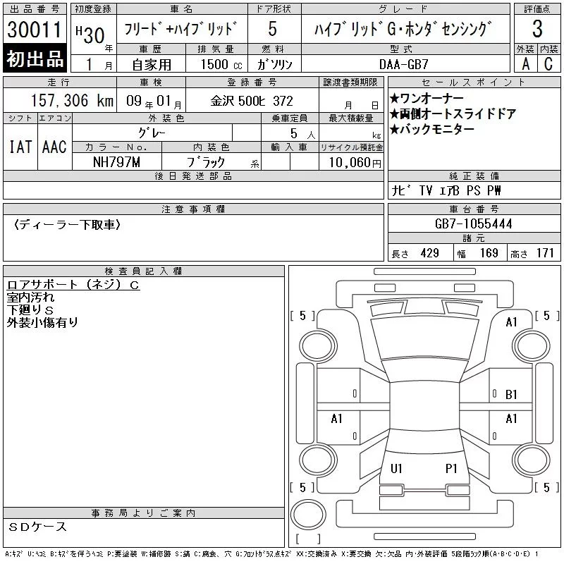 Honda FREED с аукциона Японии CAA Gifu лот № 30011