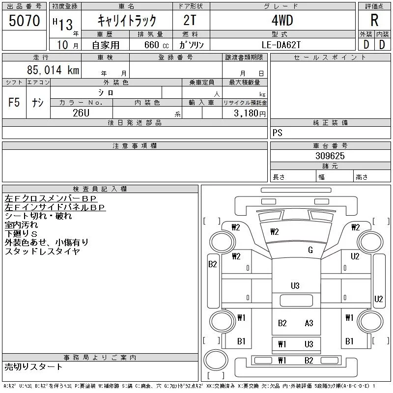 Suzuki CARRY TRUCK с аукциона Японии CAA Tohoku лот № 5070
