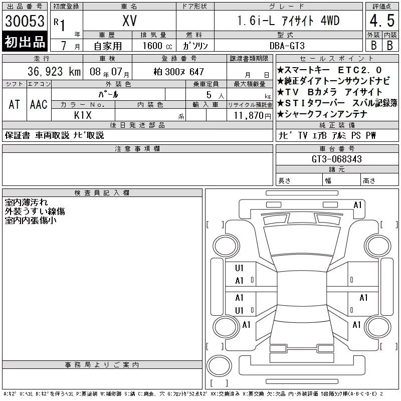Subaru XV с аукциона Японии CAA Tokyo лот № 30053