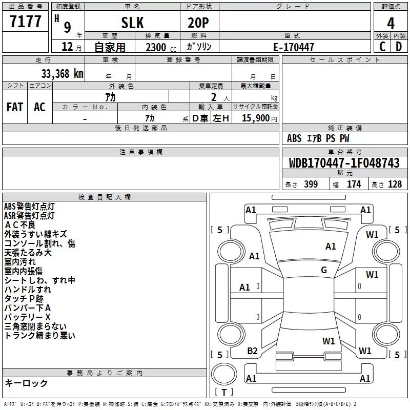 Mercedes-Benz SLK CLASS с аукциона Японии TAA Hiroshima лот № 7177