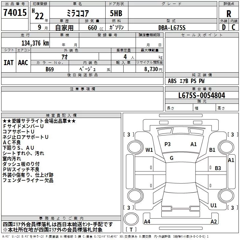 Daihatsu MIRA с аукциона Японии TAA Shikoku лот № 74015