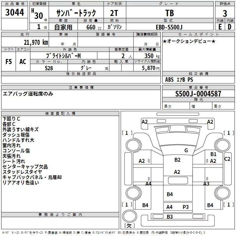 Subaru SAMBAR с аукциона Японии TAA Hiroshima лот № 3044