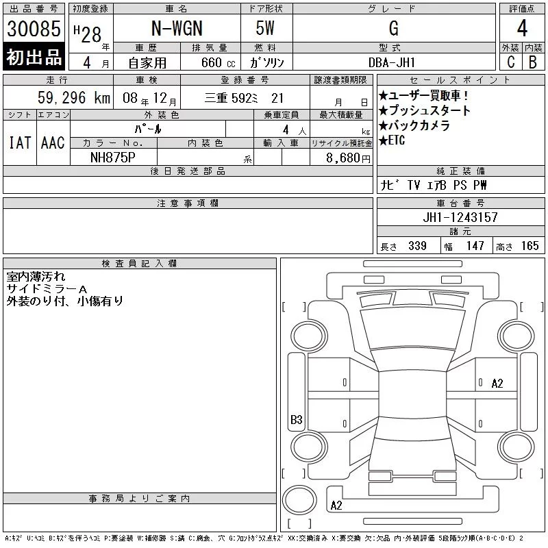 Honda N WGN с аукциона Японии CAA Gifu лот № 30085