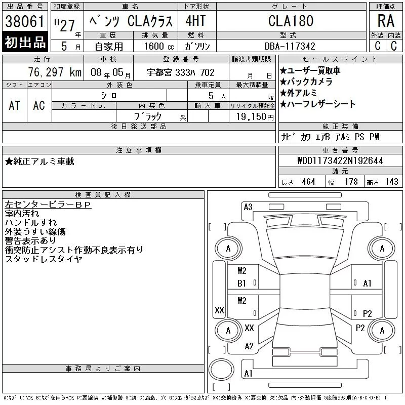 Mercedes-Benz CLA CLASS с аукциона Японии CAA Tokyo лот № 38061