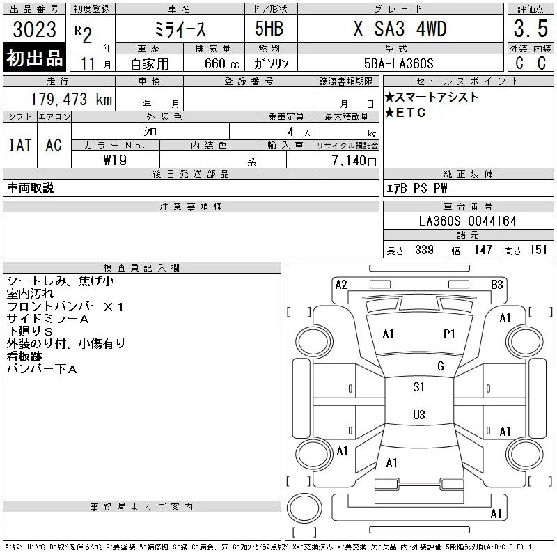 Daihatsu MIRA E S с аукциона Японии CAA Tohoku лот № 3023
