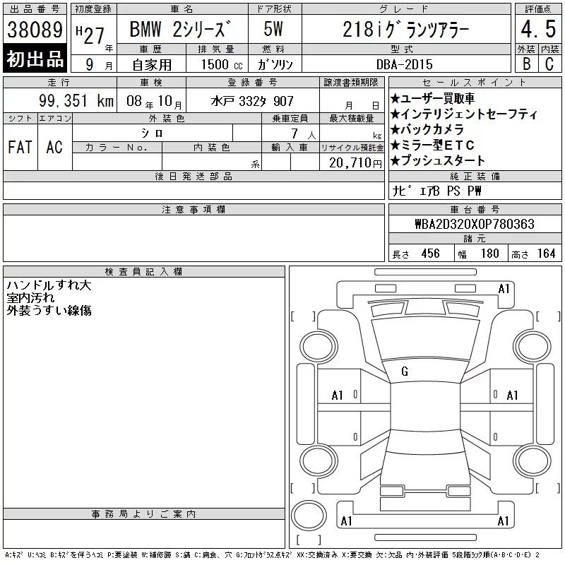 BMW 2-Series с аукциона Японии CAA Tokyo лот № 38089