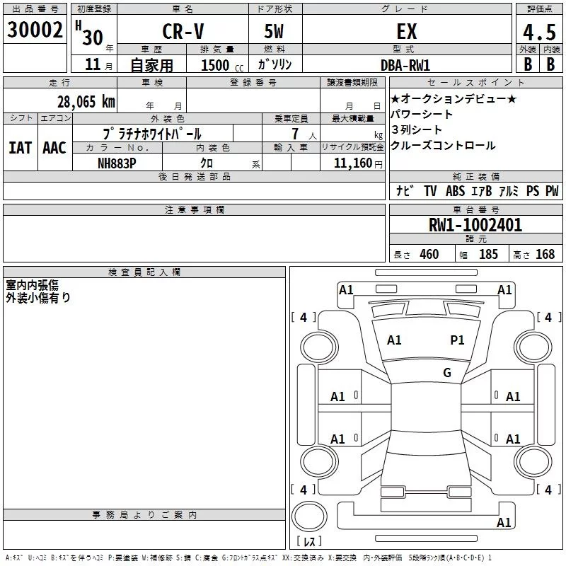 Honda CR-V с аукциона Японии TAA Hiroshima лот № 30002