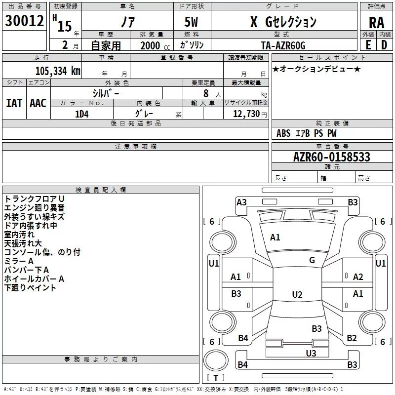 Toyota NOAH с аукциона Японии TAA Hiroshima лот № 30012