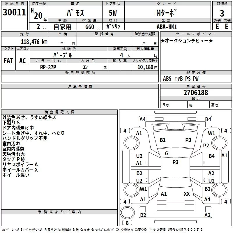 Honda VAMOS с аукциона Японии TAA Hiroshima лот № 30011