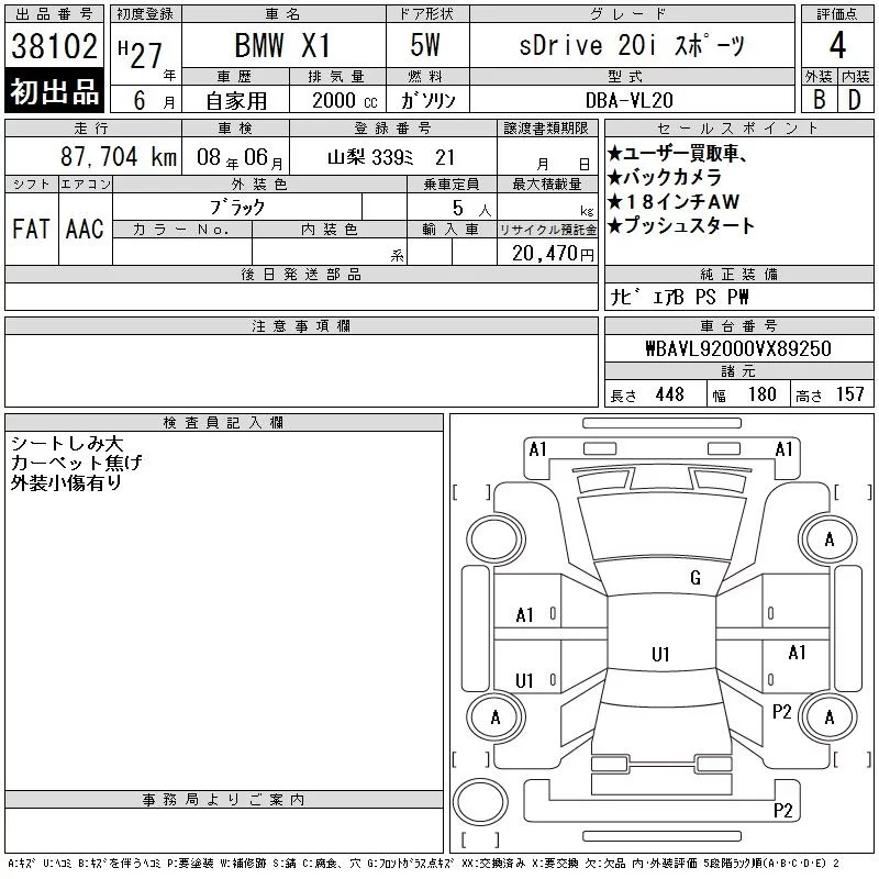 BMW X1 с аукциона Японии CAA Tokyo лот № 38102