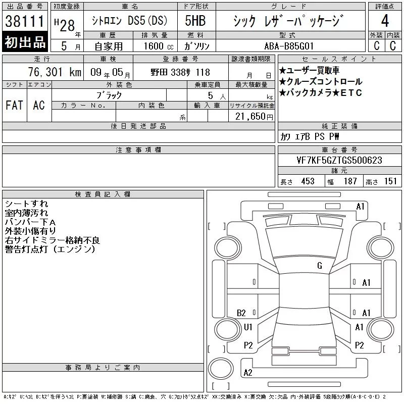 Citroen DS5 с аукциона Японии CAA Tokyo лот № 38111