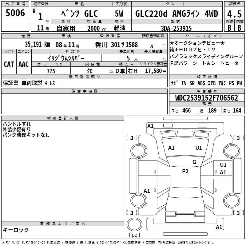 Mercedes-Benz GLC CLASS с аукциона Японии TAA Shikoku лот № 5006