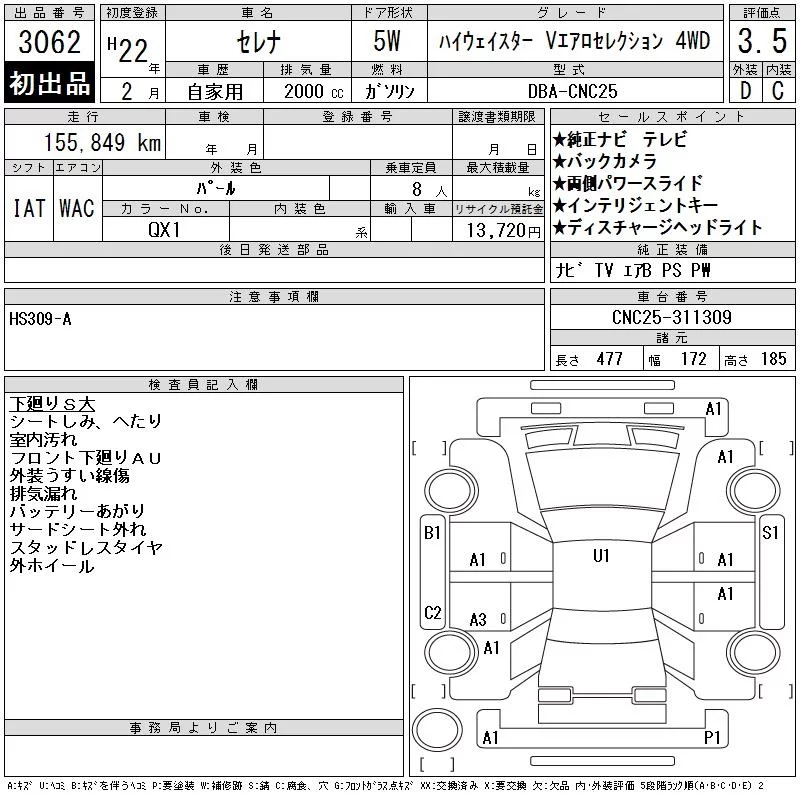 Nissan SERENA с аукциона Японии CAA Tohoku лот № 3062