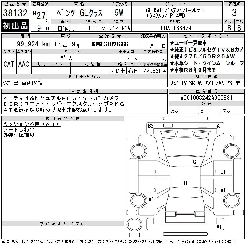 Mercedes-Benz GL CLASS с аукциона Японии CAA Tokyo лот № 38132