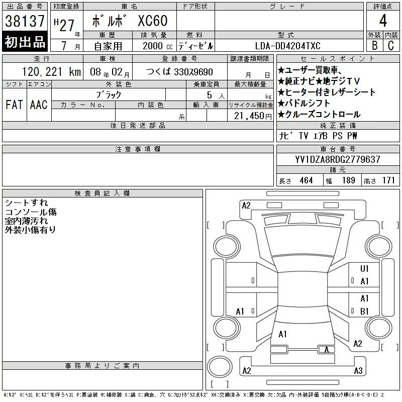 Volvo XC60 с аукциона Японии CAA Tokyo лот № 38137