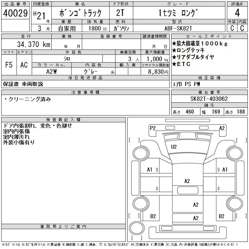 Mazda BONGO с аукциона Японии CAA Tokyo лот № 40029