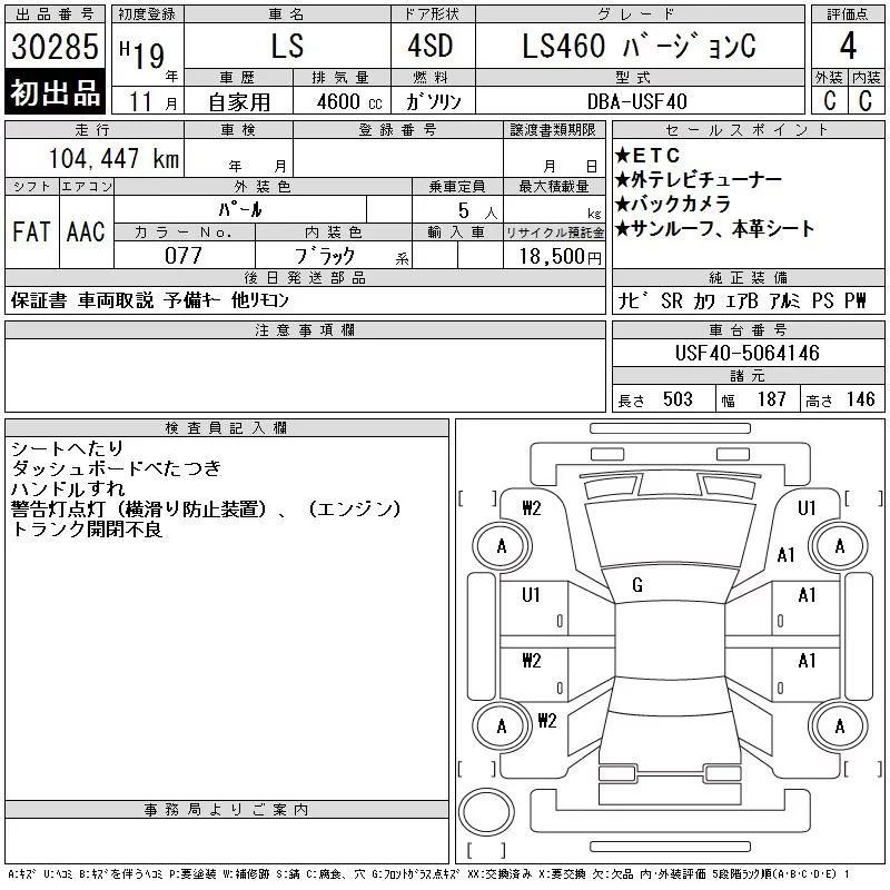 Lexus LS с аукциона Японии CAA Gifu лот № 30285