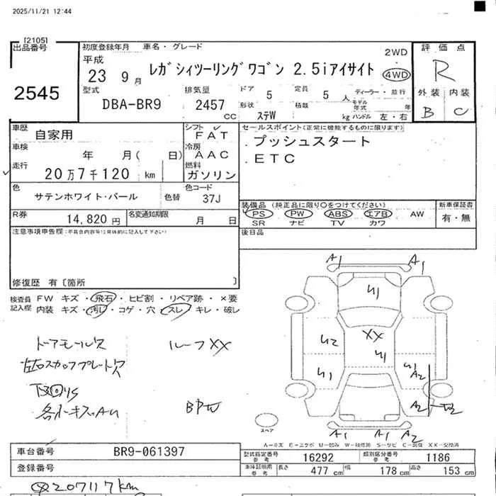 Subaru LEGACY с аукциона Японии JU Nagano лот № 2545