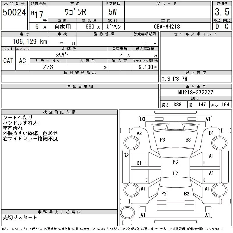 Suzuki WAGON R с аукциона Японии CAA Tokyo лот № 50024