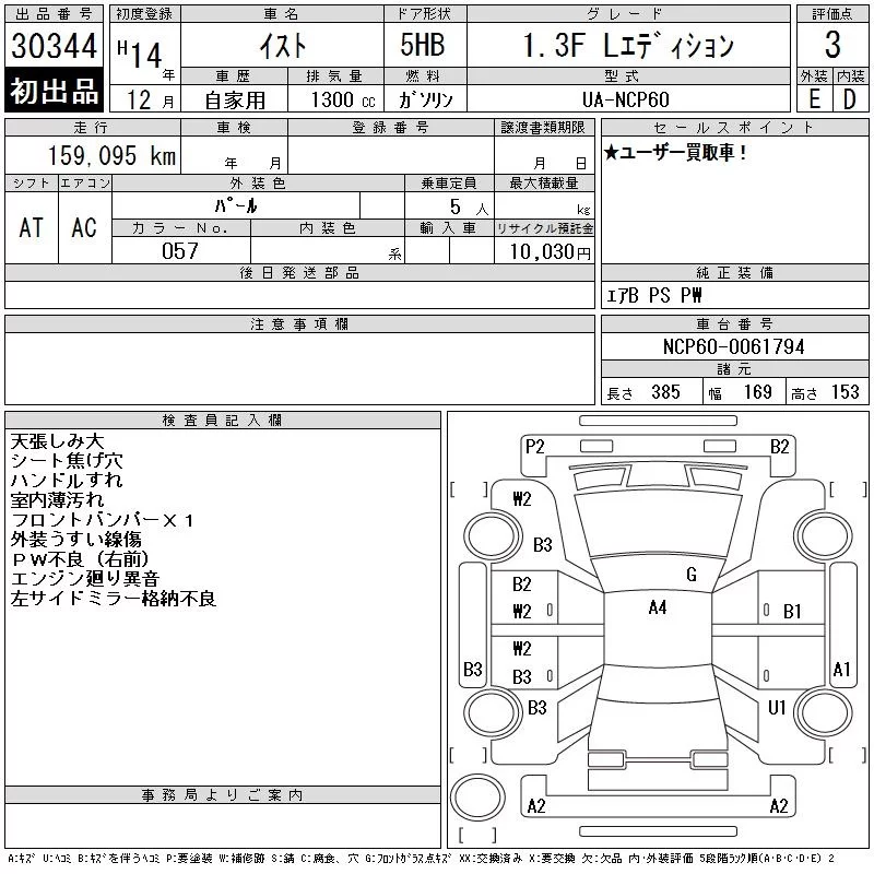 Toyota IST с аукциона Японии CAA Tokyo лот № 30344