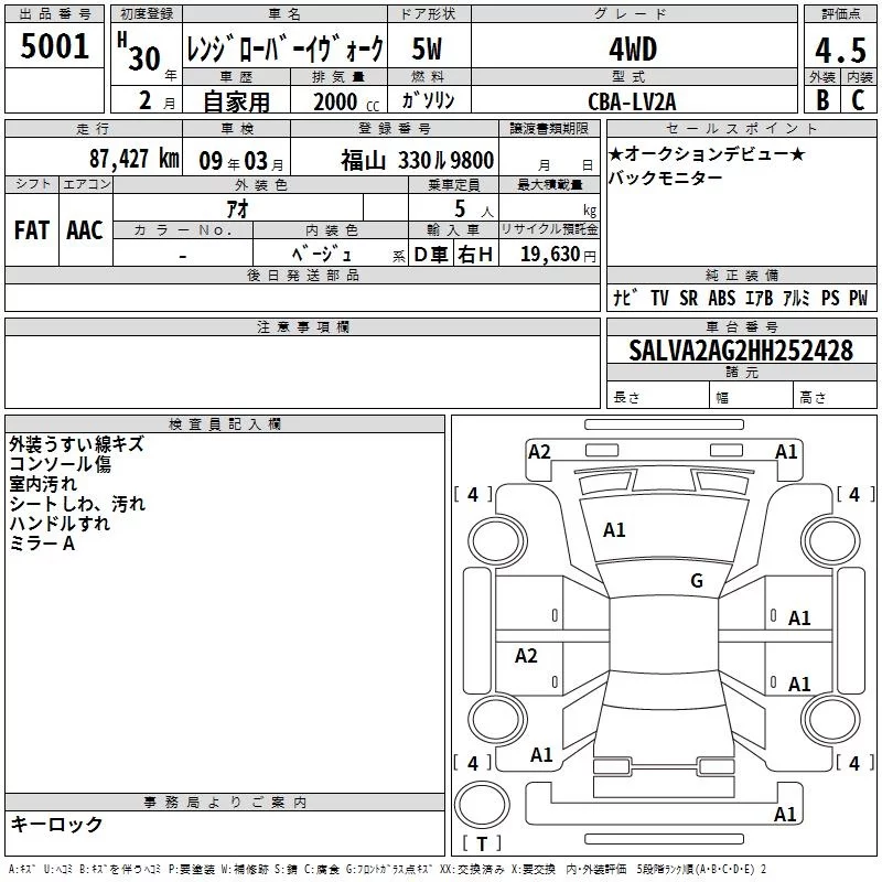 Rover RANGE ROVER с аукциона Японии TAA Hiroshima лот № 5001