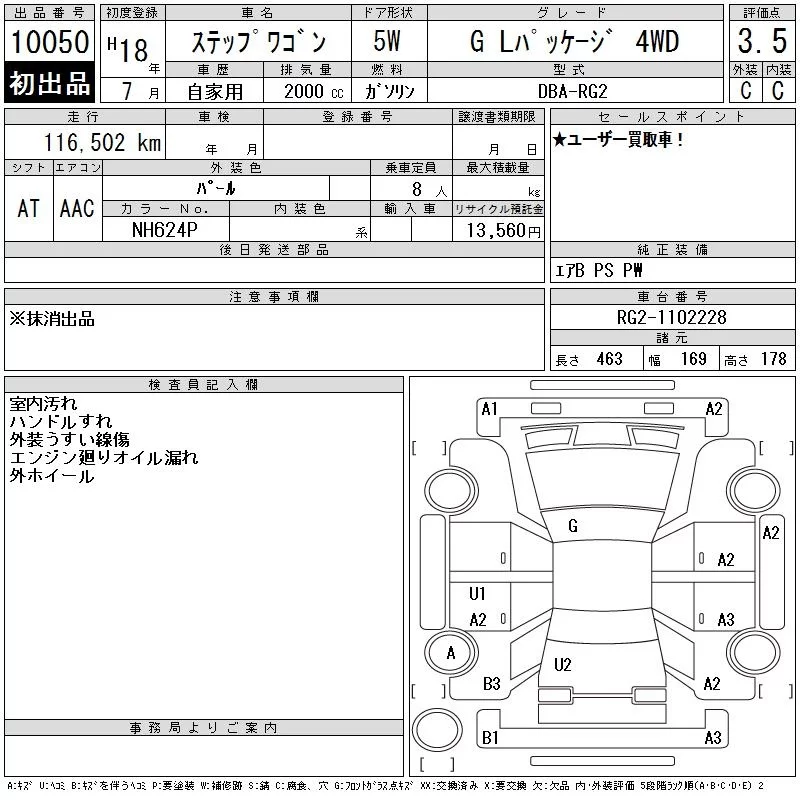 Honda STEP WAGON с аукциона Японии CAA Gifu лот № 10050