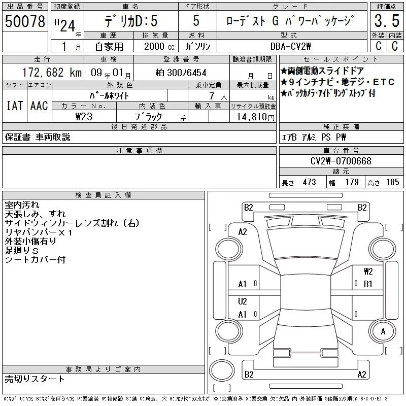 Mitsubishi DELICA D5 с аукциона Японии CAA Tokyo лот № 50078