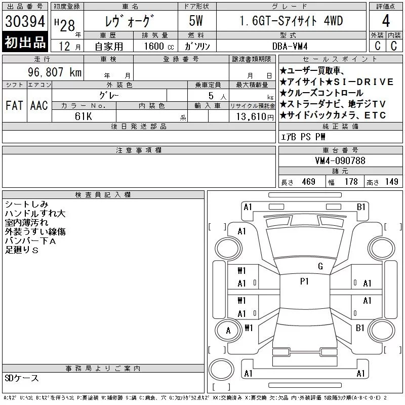 Subaru LEVORG с аукциона Японии CAA Tokyo лот № 30394