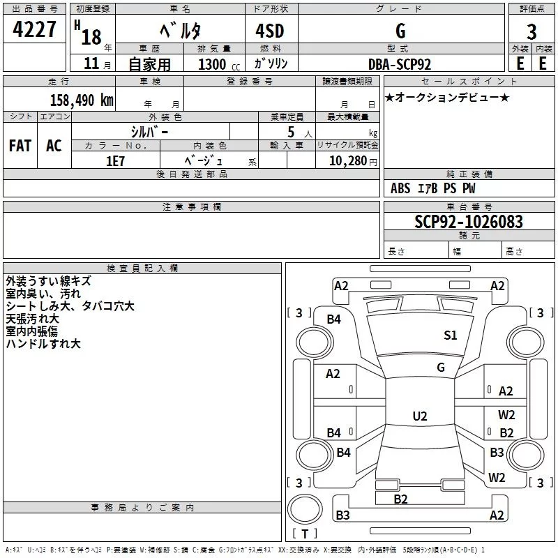 Toyota BELTA с аукциона Японии TAA Kyushu лот № 4227