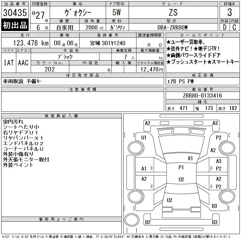 Toyota VOXY с аукциона Японии CAA Tokyo лот № 30435