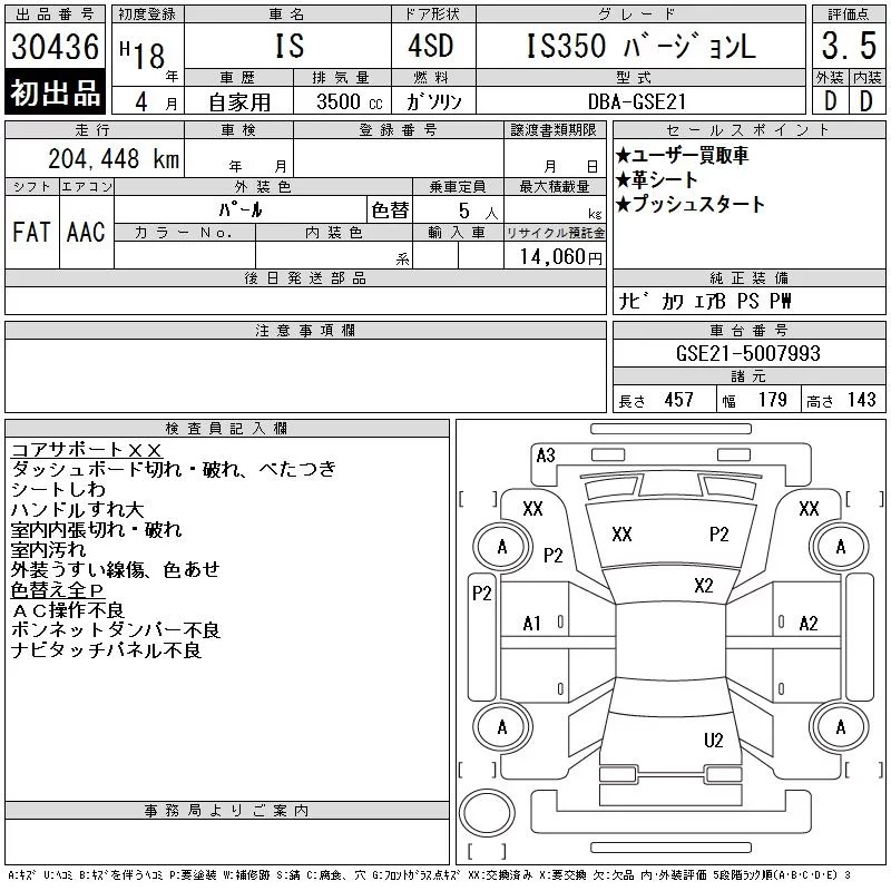 Lexus IS с аукциона Японии CAA Tokyo лот № 30436