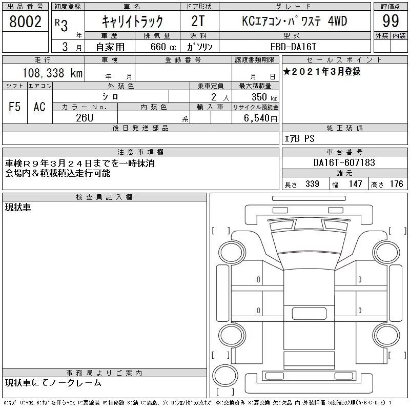 Suzuki CARRY TRUCK с аукциона Японии CAA Tohoku лот № 8002
