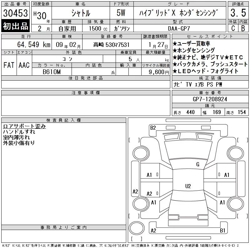 Honda SHUTTLE с аукциона Японии CAA Tokyo лот № 30453