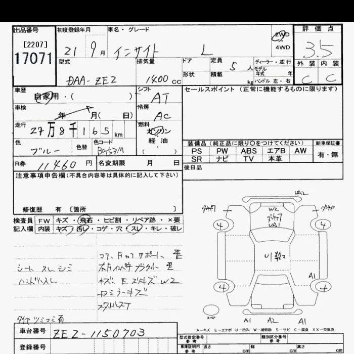 Honda INSIGHT с аукциона Японии JU Saitama лот № 17071