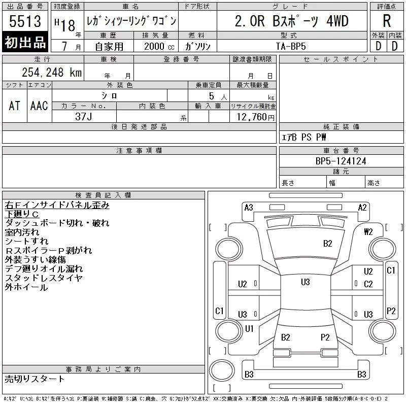 Subaru LEGACY с аукциона Японии CAA Tohoku лот № 5513