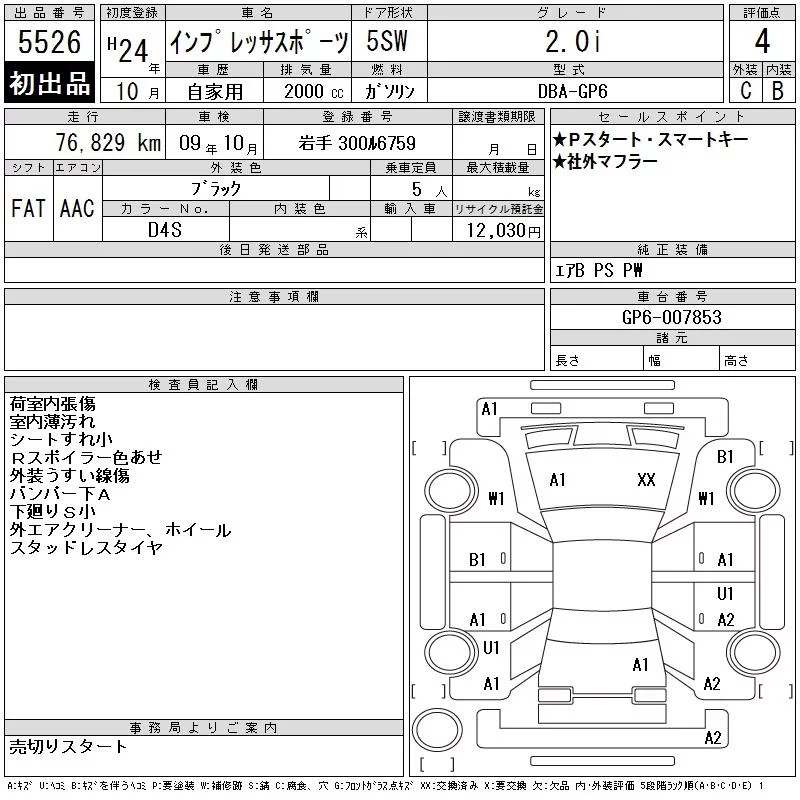 Subaru IMPREZA с аукциона Японии CAA Tohoku лот № 5526