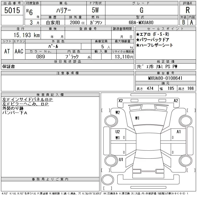 Toyota HARRIER с аукциона Японии CAA Gifu лот № 5015
