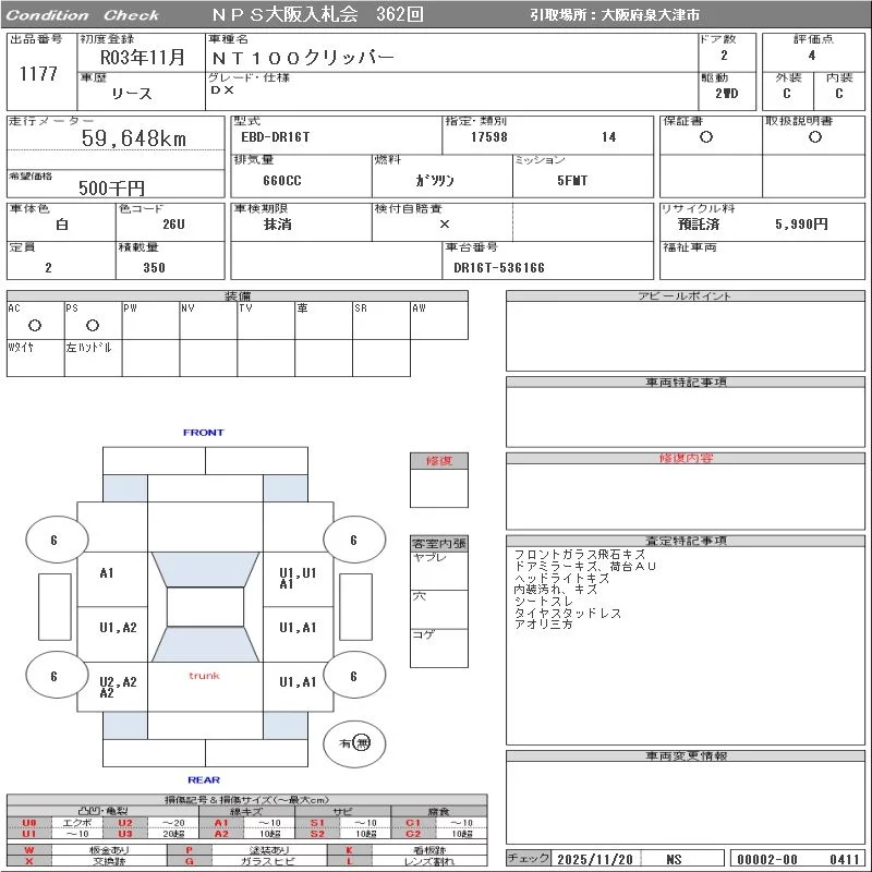 Nissan CLIPPER TRUCK с аукциона Японии NPS Osaka Nyusatsu лот № 1177