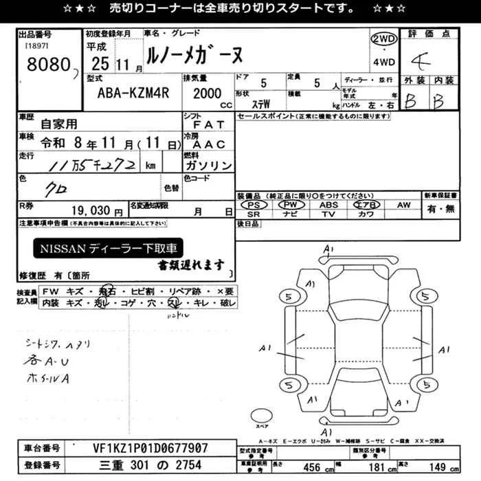 Renault MEGANE с аукциона Японии JU Mie лот № 8080