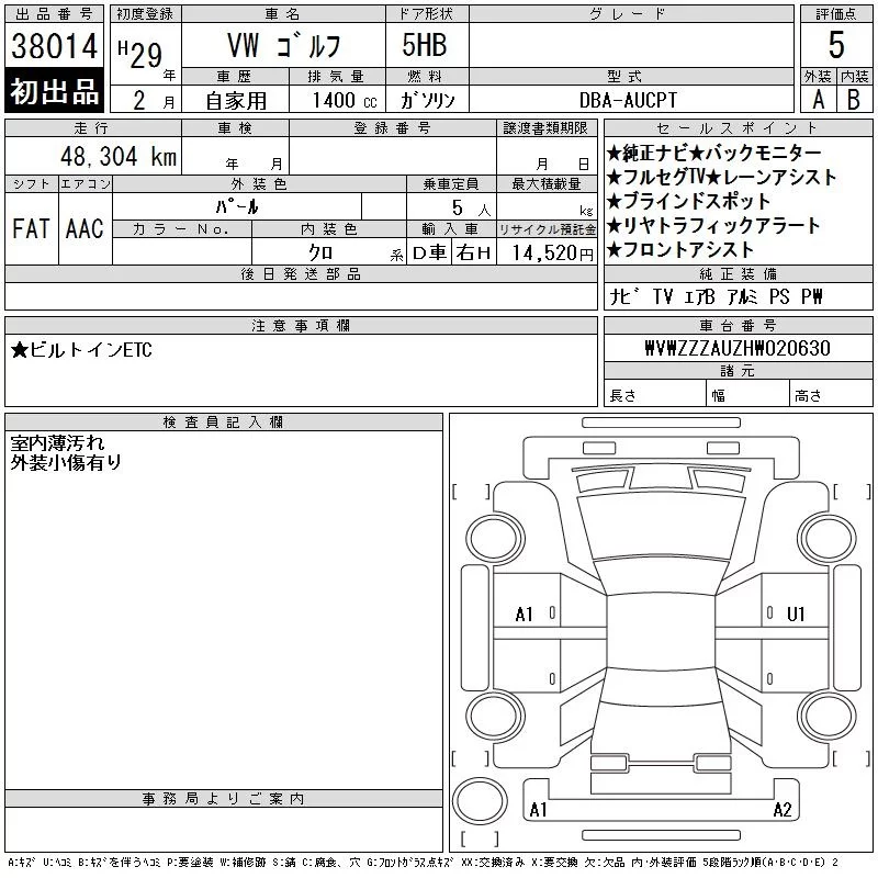 Volkswagen GOLF с аукциона Японии CAA Chubu лот № 38014