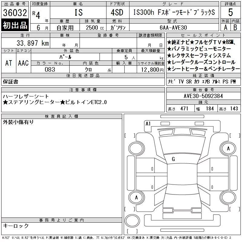 Lexus IS с аукциона Японии CAA Chubu лот № 36032